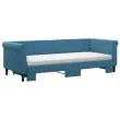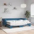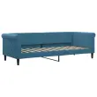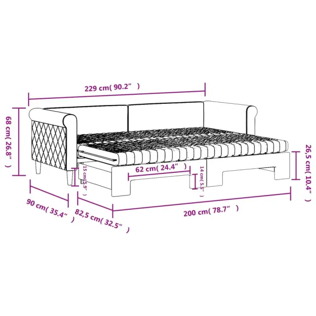 Ta 2 v 1 izvlečna dnevna postelja, ki služi kot kavč in postelja, je praktičen in privlačen dodatek za vašo dnevno sobo ali spalnico. Vsestranska dnevna postelja: Raztegljiva postelja čez dan deluje kot kavč, ponoči pa se z izvlečenim ležiščem zlahka spremeni v zakonsko posteljo, kar je priročna rešitev za sprejemanje gostov in maksimalno povečanje prostora.Udobna penasta vzmetnica: Ta postelja je opremljena z dvema vzmetnicama iz pene za največjo podporo in optimalno udobje.Mehak žamet in trdna konstrukcija: Ta dnevna postelja ima trpežen okvir iz lesa in kovine ter je oblazinjena z mehkim in udobnim žametom.Sodobno oblikovanje: Kavč postelja ima sodoben dizajn, ki ga odlikujejo čiste linije, minimalističen videz in naravna svetloba, vašim notranjim prostorom pa bo dodal sodoben stil!Barva: ModraMaterial: Žamet (100% poliester), kovina, trden lesMaterial prevleke vzmetnice: Kosmatena pleteninaMaterial letvic: Vezan lesMaterial polnila: PenaDimenzije (neraztegnjena): 229 x 90 x 68 cm (D x Š x V)Dimenzije (raztegnjena): 229 x 172,5 x 68 cm (D x Š x V)Dimenzije vzmetnice iz pene (vsaka): 80 x 200 x 10 cm (Š x D x V)Višina naslonjal za roke, od tal: 68 cmVišina nog: 15 cmPotrebno sestavljanje: DaPaket vsebuje:1 x Izvlečna dnevna postelja2 x Vzmetnica iz pene 3197787