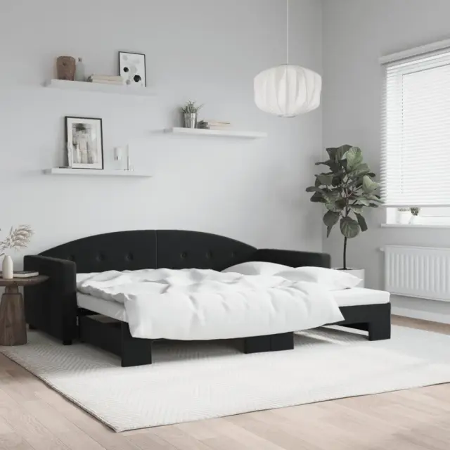 vidaXL Izvlečna dnevna postelja črna 90x200 cm žamet