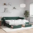 vidaXL Izvlečna dnevna postelja s predali temno zelena 80x200 cm žamet