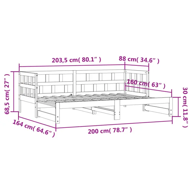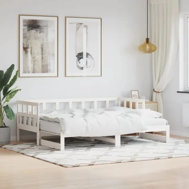 vidaXL Izvlečna dnevna postelja bela 80x200 cm trdna borovina