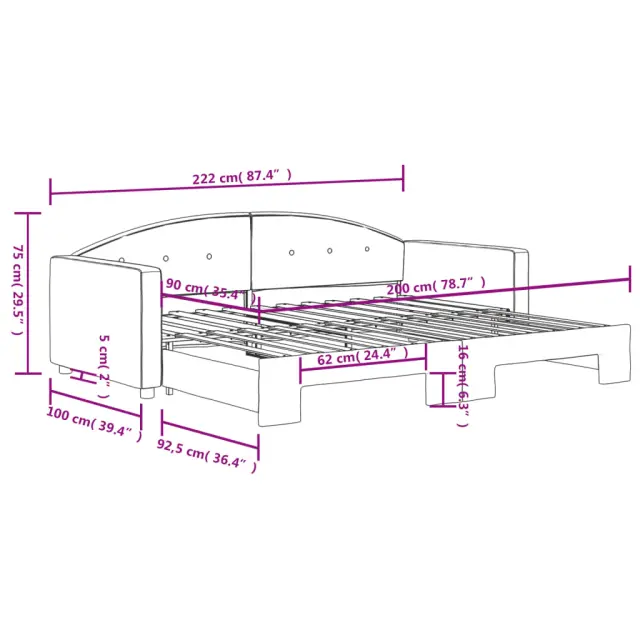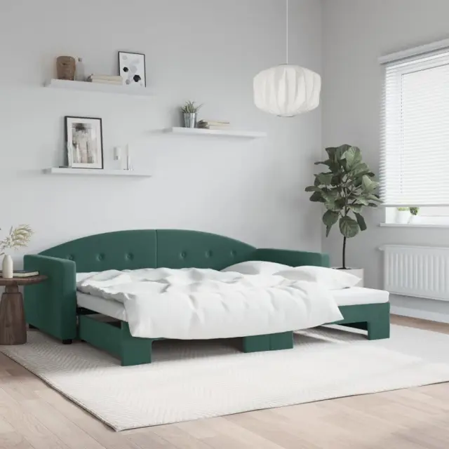 vidaXL Izvlečna dnevna postelja temno zelena 90x200 cm žamet