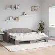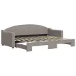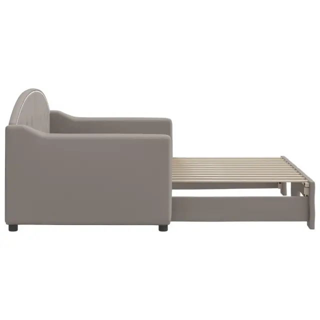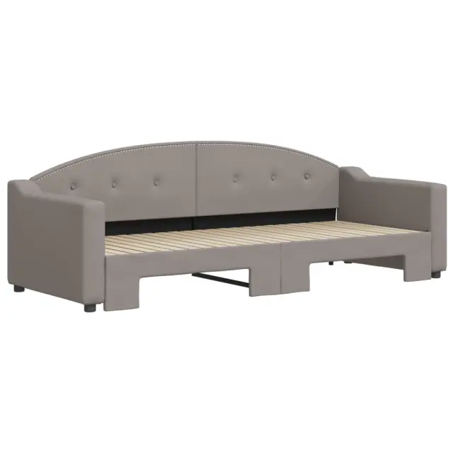 Ta 2 v 1 izvlečna dnevna postelja, ki služi kot kavč in postelja, je praktičen in privlačen dodatek za vašo dnevno sobo ali spalnico. Vsestranska dnevna postelja: Raztegljiva postelja čez dan deluje kot kavč, ponoči pa se z izvlečenim ležiščem zlahka spremeni v zakonsko posteljo, kar je priročna rešitev za sprejemanje gostov in maksimalno povečanje prostora. Trpežna tkanina: Postelja za goste je izdelana iz blaga. Tkanina je preprostega in čistega videza, hkrati pa je zračna in ima dolgo življenjsko dobo. Trdna konstrukcija: Lesen in kovinski okvir postelje za spanje zagotavlja trdnost in stabilnost. Dobro je vedeti:Vzmetnice niso priložene tej dnevni postelji. Ponujamo različno izbiro ležišč. V naši trgovini si lahko ogledate ustrezne vzmetnice.Barva: Taupe Material: Tkanina (100 % poliester), kovina, trden lesMaterial letvic: Vezan les Material polnila: Pena Dimenzije (neraztegnjena): 223 x 90 x 75 cm (D x Š x V) Dimenzije (raztegnjena): 223 x 172,5 x 75 cm (D x Š x V) Višina naslonjala za roke, merjena od tal: 58 cmVišina nog: 5 cm Primerna velikost vzmetnice: 80 x 200 cm (Š x D) Potrebno: 2 x vzmetnica (ni vključena) Potrebno sestavljanje: Da 3197528