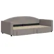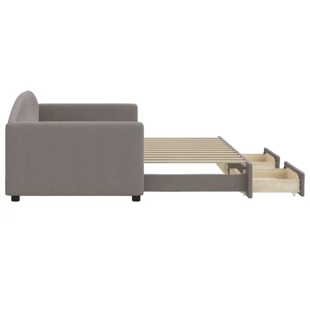 Ta 2 v 1 izvlečna dnevna postelja, ki služi kot kavč in postelja, je praktičen in privlačen dodatek za vašo dnevno sobo ali spalnico. Vsestranska dnevna postelja: Raztegljiva postelja čez dan deluje kot kavč, ponoči pa se z izvlečenim ležiščem zlahka spremeni v zakonsko posteljo, kar je priročna rešitev za sprejemanje gostov in maksimalno povečanje prostora.Veliko prostora za shranjevanje: Ta postelja za goste ima dva predala s kolesi, ki zagotavljata dovolj prostora za shranjevanje oblačil, nogavic, igrač, blazin itd.Vzdržljiva tkanina in trdna konstrukcija: Ta dnevni kavč ima trpežen okvir iz lesa in kovine ter je oblazinjen s trpežno in udobno tkanino. Dobro je vedeti:Vzmetnice niso priložene tej postelji. Ponujamo različno izbiro ležišč. V naši trgovini si lahko ogledate ustrezne vzmetnice.Barva: TaupeMaterial: Tkanina (100 % poliester), kovina, trden lesMaterial letvic: Vezan les Material polnila: PenaDimenzije (neraztegnjena): 223 x 100 x 75 cm (Š x G x V)Dimenzije (raztegnjena): 223 x 192,5 x 75 cm (Š x G x V)Dimenzije posteljnega predala (vsak): 67 x 50 x 16 cm (D x Š x V)Višina naslonjala za roke, merjena od tal: 58 cmVišina nog: 5 cmVelikost primerne vzmetnice: 90 x 200 cm (Š x D) (vzmetnice niso priložene)Potrebno: 2 x vzmetnica (ni vključena)Potrebno sestavljanje: DaPaket vsebuje:1 x Izvlečna dnevna postelja 2 x Posteljni predal 3197227