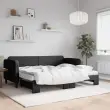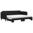Ta 2 v 1 izvlečna dnevna postelja, ki služi kot kavč in postelja, je praktičen in privlačen dodatek za vašo dnevno sobo ali spalnico. Vsestranska dnevna postelja: Raztegljiva postelja čez dan deluje kot kavč, ponoči pa se z izvlečenim ležiščem zlahka spremeni v zakonsko posteljo, kar je priročna rešitev za sprejemanje gostov in maksimalno povečanje prostora.Udobna penasta vzmetnica: Ta postelja je opremljena z dvema vzmetnicama iz pene za največjo podporo in optimalno udobje.Vzdržljiva tkanina in trdna konstrukcija: Ta dnevni kavč ima trpežen okvir iz lesa in kovine ter je oblazinjen s trpežno in udobno tkanino.Barva: ČrnaMaterial: Tkanina (100 % poliester), kovina, trden lesMaterial letvic: Vezan les Material polnila: Pena Dimenzije (neraztegnjena): 223 x 90 x 75 cm (D x Š x V) Dimenzije (raztegnjena): 223 x 172,5 x 75 cm (D x Š x V) Dimenzije vzmetnice iz pene (vsaka): 80 x 200 x 10 cm (Š x D x V)Višina naslonjal za roke, od tal: 68 cmVišina nog: 15 cmPotrebno sestavljanje: DaPaket vsebuje:1 x Izvlečna dnevna postelja 2 x Vzmetnica iz pene 3196831