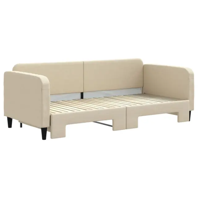 Ta 2 v 1 izvlečna dnevna postelja, ki služi kot kavč in postelja, je praktičen in privlačen dodatek za vašo dnevno sobo ali spalnico. Vsestranska dnevna postelja: Raztegljiva postelja čez dan deluje kot kavč, ponoči pa se z izvlečenim ležiščem zlahka spremeni v zakonsko posteljo, kar je priročna rešitev za sprejemanje gostov in maksimalno povečanje prostora.Trpežna tkanina: Postelja za goste je izdelana iz blaga. Tkanina je preprostega in čistega videza, hkrati pa je zračna in ima dolgo življenjsko dobo.Trdna konstrukcija: Lesen in kovinski okvir postelje za spanje zagotavlja trdnost in stabilnost. Dobro je vedeti:Vzmetnice niso priložene tej dnevni postelji. Ponujamo različno izbiro ležišč. V naši trgovini si lahko ogledate ustrezne vzmetnice.Barva: KremMaterial: Tkanina (100 % poliester), kovina, trden lesMaterial letvic: Vezan les Material polnila: Pena Dimenzije (neraztegnjena): 223 x 100 x 75 cm (D x Š x V) Dimenzije (raztegnjena): 223 x 192,5 x 75 cm (D x Š x V) Višina naslonjal za roke, od tal: 68 cmVišina nog: 15 cmVelikost primerne vzmetnice: 90 x 200 cm (Š x D) Potrebno: 2 x vzmetnica (ni vključena) Potrebno sestavljanje: Da 3196820