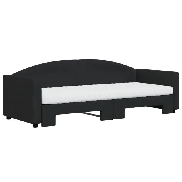 Ta 2 v 1 izvlečna dnevna postelja, ki služi kot kavč in postelja, je praktičen in privlačen dodatek za vašo dnevno sobo ali spalnico. Vsestranska dnevna postelja: Raztegljiva postelja čez dan deluje kot kavč, ponoči pa se z izvlečenim ležiščem zlahka spremeni v zakonsko posteljo, kar je priročna rešitev za sprejemanje gostov in maksimalno povečanje prostora.Udobna penasta vzmetnica: Ta postelja je opremljena z dvema vzmetnicama iz pene za največjo podporo in optimalno udobje.Vzdržljiva tkanina in trdna konstrukcija: Ta dnevni kavč ima trpežen okvir iz lesa in kovine ter je oblazinjen s trpežno in udobno tkanino.Sodobno oblikovanje: Kavč postelja ima sodoben dizajn, ki ga odlikujejo čiste linije, minimalističen videz in naravna svetloba, vašim notranjim prostorom pa bo dodal sodoben stil!Barva: ČrnaMaterial: Tkanina (100 % poliester), kovina, trden lesMaterial letvic: Vezan les Material polnila: PenaDimenzije (neraztegnjena): 223 x 90 x 75 cm (Š x G x V)Dimenzije (raztegnjena): 223 x 172,5 x 75 cm (Š x G x V)Dimenzije vzmetnice iz pene (vsaka): 80 x 200 x 10 cm (Š x D x D)Višina naslonjala za roke, merjena od tal: 58 cmVišina nog: 5 cmPotrebno sestavljanje: DaPaket vsebuje:1 x Izvlečna dnevna postelja 2 x Vzmetnica iz pene 3197203