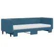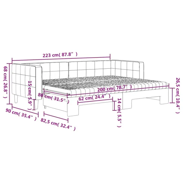 Ta 2 v 1 izvlečna dnevna postelja, ki služi kot kavč in postelja, je praktičen in privlačen dodatek za vašo dnevno sobo ali spalnico. Vsestranska dnevna postelja: Raztegljiva postelja čez dan deluje kot kavč, ponoči pa se z izvlečenim ležiščem zlahka spremeni v zakonsko posteljo, kar je priročna rešitev za sprejemanje gostov in maksimalno povečanje prostora.Udobna penasta vzmetnica: Ta postelja je opremljena z dvema vzmetnicama iz pene za največjo podporo in optimalno udobje.Mehak žamet in trdna konstrukcija: Ta dnevna postelja ima trpežen okvir iz lesa in kovine ter je oblazinjena z mehkim in udobnim žametom.Sodobno oblikovanje: Kavč postelja ima sodoben dizajn, ki ga odlikujejo čiste linije, minimalističen videz in naravna svetloba, vašim notranjim prostorom pa bo dodal sodoben stil!Barva: ModraMaterial: Žamet (100% poliester), kovina, trden lesMaterial prevleke vzmetnice: Kosmatena pleteninaMaterial letvic: Vezan lesMaterial polnila: PenaDimenzije (neraztegnjena): 223 x 90 x 68 cm (D x Š x V)Dimenzije (raztegnjena): 223 x 172,5 x 68 cm (D x Š x V)Dimenzije vzmetnice iz pene (vsaka): 80 x 200 x 10 cm (Š x D x V)Višina naslonjal za roke, od tal: 68 cmVišina nog: 15 cmPotrebno sestavljanje: DaPaket vsebuje:1 x Izvlečna dnevna postelja2 x Vzmetnica iz pene 3196707