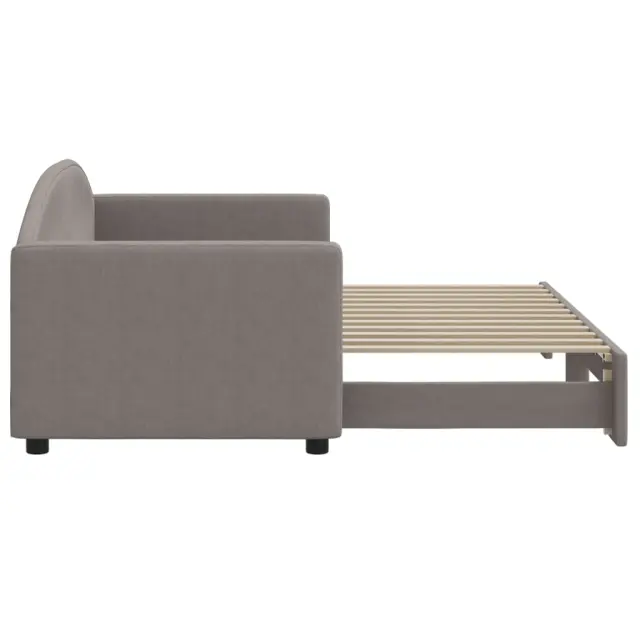 Ta 2 v 1 izvlečna dnevna postelja, ki služi kot kavč in postelja, je praktičen in privlačen dodatek za vašo dnevno sobo ali spalnico. Vsestranska dnevna postelja: Raztegljiva postelja čez dan deluje kot kavč, ponoči pa se z izvlečenim ležiščem zlahka spremeni v zakonsko posteljo, kar je priročna rešitev za sprejemanje gostov in maksimalno povečanje prostora.Vzdržljiva tkanina in trdna konstrukcija: Ta dnevni kavč ima trpežen okvir iz lesa in kovine ter je oblazinjen s trpežno in udobno tkanino.Sodobno oblikovanje: Kavč postelja ima sodoben dizajn, ki ga odlikujejo čiste linije, minimalističen videz in naravna svetloba, vašim notranjim prostorom pa bo dodal sodoben stil! Dobro je vedeti:Vzmetnice niso priložene tej postelji. Ponujamo različno izbiro ležišč. V naši trgovini si lahko ogledate ustrezne vzmetnice.Barva: TaupeMaterial: Tkanina (100 % poliester), kovina, trden lesMaterial letvic: Vezan les Material polnila: PenaDimenzije (neraztegnjena): 223 x 90 x 75 cm (Š x G x V)Dimenzije (raztegnjena): 223 x 172,5 x 75 cm (Š x G x V)Višina naslonjala za roke, merjena od tal: 58 cmVišina nog: 5 cmPrimerna velikost vzmetnice: 80 x 200 cm (Š x D) (vzmetnice niso priložene)Potrebno: 2 x vzmetnica (ni vključena)Potrebno sestavljanje: Da 3197186