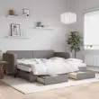Ta 2 v 1 izvlečna dnevna postelja, ki služi kot kavč in postelja, je praktičen in privlačen dodatek za vašo dnevno sobo ali spalnico. Vsestranska dnevna postelja: Raztegljiva postelja čez dan deluje kot kavč, ponoči pa se z izvlečenim ležiščem zlahka spremeni v zakonsko posteljo, kar je priročna rešitev za sprejemanje gostov in maksimalno povečanje prostora.Veliko prostora za shranjevanje: Ta postelja za goste ima dva predala s kolesi, ki zagotavljata dovolj prostora za shranjevanje oblačil, nogavic, igrač, blazin itd.Udobna penasta vzmetnica: Ta postelja je opremljena z dvema vzmetnicama iz pene za največjo podporo in optimalno udobje.Vzdržljiva tkanina in trdna konstrukcija: Ta dnevni kavč ima trpežen okvir iz lesa in kovine ter je oblazinjen s trpežno in udobno tkanino.Barva: TaupeMaterial: Tkanina (100 % poliester), kovina, trden lesMaterial letvic: Vezan les Material polnila: Pena Dimenzije (neraztegnjena): 223 x 100 x 75 cm (D x Š x V) Dimenzije (raztegnjena): 223 x 192,5 x 75 cm (D x Š x V) Dimenzije vzmetnice iz pene (vsaka): 90 x 200 x 10 cm (Š x D x V)Dimenzije posteljnega predala (vsak): 67 x 50 x 16 cm (D x Š x V)Višina naslonjal za roke, od tal: 68 cmVišina nog: 15 cmPotrebno sestavljanje: DaPaket vsebuje:1 x Izvlečna dnevna postelja 2 x Vzmetnica iz pene2 x Posteljni predal 3196873