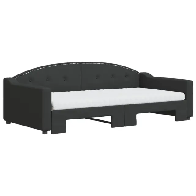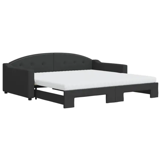 Ta 2 v 1 izvlečna dnevna postelja, ki služi kot kavč in postelja, je praktičen in privlačen dodatek za vašo dnevno sobo ali spalnico. Vsestranska dnevna postelja: Raztegljiva postelja čez dan deluje kot kavč, ponoči pa se z izvlečenim ležiščem zlahka spremeni v zakonsko posteljo, kar je priročna rešitev za sprejemanje gostov in maksimalno povečanje prostora. Udobna penasta vzmetnica: Ta postelja je opremljena z dvema vzmetnicama iz pene za največjo podporo in optimalno udobje. Vzdržljiva tkanina in trdna konstrukcija: Ta dnevni kavč ima trpežen okvir iz lesa in kovine ter je oblazinjen s trpežno in udobno tkanino.Barva: Črna Material: Tkanina (100 % poliester), kovina, trden lesMaterial letvic: Vezan les Material polnila: Pena Dimenzije (neraztegnjena): 223 x 110 x 75 cm (D x Š x V) Dimenzije (raztegnjena): 223 x 212,5 x 75 cm (D x Š x V) Dimenzije vzmetnice iz pene (vsaka): 100 x 200 x 10 cm (Š x D x V)Višina naslonjala za roke, merjena od tal: 58 cmVišina nog: 5 cm Potrebno sestavljanje: DaPaket vsebuje:1 x Izvlečna dnevna postelja 2 x Vzmetnica iz pene 3197555