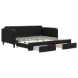 Ta 2 v 1 izvlečna dnevna postelja, ki služi kot kavč in postelja, je praktičen in privlačen dodatek za vašo dnevno sobo ali spalnico. Vsestranska dnevna postelja: Raztegljiva postelja čez dan deluje kot kavč, ponoči pa se z izvlečenim ležiščem zlahka spremeni v zakonsko posteljo, kar je priročna rešitev za sprejemanje gostov in maksimalno povečanje prostora.Veliko prostora za shranjevanje: Ta postelja za goste ima dva predala s kolesi, ki zagotavljata dovolj prostora za shranjevanje oblačil, nogavic, igrač, blazin itd.Vzdržljiva tkanina in trdna konstrukcija: Ta dnevni kavč ima trpežen okvir iz lesa in kovine ter je oblazinjen s trpežno in udobno tkanino. Dobro je vedeti:Vzmetnice niso priložene tej dnevni postelji. Ponujamo različno izbiro ležišč. V naši trgovini si lahko ogledate ustrezne vzmetnice.Barva: ČrnaMaterial: Tkanina (100 % poliester), kovina, trden lesMaterial letvic: Vezan les Material polnila: Pena Dimenzije (neraztegnjena): 223 x 110 x 75 cm (D x Š x V) Dimenzije (raztegnjena): 223 x 212,5 x 75 cm (D x Š x V) Dimenzije posteljnega predala (vsak): 67 x 50 x 16 cm (D x Š x V)Višina naslonjal za roke, od tal: 68 cmVišina nog: 15 cmVelikost primerne vzmetnice: 100 x 200 cm (Š x D) Potrebno: 2 x vzmetnica (ni vključena) Potrebno sestavljanje: DaPaket vsebuje:1 x Izvlečna dnevna postelja 2 x Posteljni predal 3196859