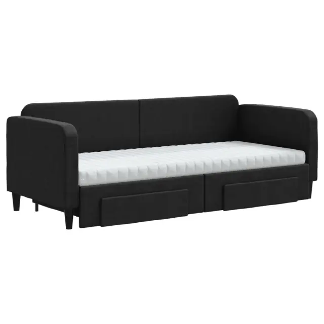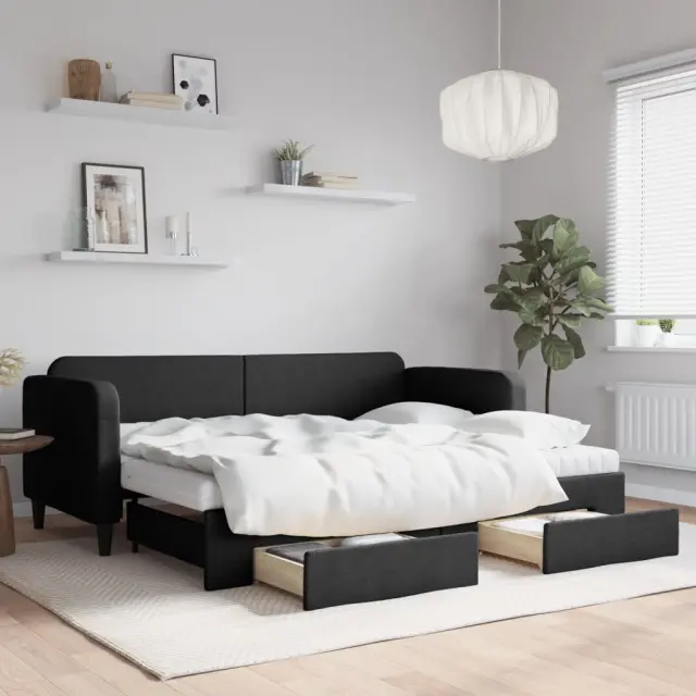 vidaXL Izvlečna dnevna postelja s predali črna 80x200 cm blago