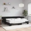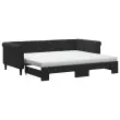 Ta 2 v 1 izvlečna dnevna postelja, ki služi kot kavč in postelja, je praktičen in privlačen dodatek za vašo dnevno sobo ali spalnico. Vsestranska dnevna postelja: Raztegljiva postelja čez dan deluje kot kavč, ponoči pa se z izvlečenim ležiščem zlahka spremeni v zakonsko posteljo, kar je priročna rešitev za sprejemanje gostov in maksimalno povečanje prostora.Udobna penasta vzmetnica: Ta postelja je opremljena z dvema vzmetnicama iz pene za največjo podporo in optimalno udobje.Mehak žamet in trdna konstrukcija: Ta dnevna postelja ima trpežen okvir iz lesa in kovine ter je oblazinjena z mehkim in udobnim žametom.Sodobno oblikovanje: Kavč postelja ima sodoben dizajn, ki ga odlikujejo čiste linije, minimalističen videz in naravna svetloba, vašim notranjim prostorom pa bo dodal sodoben stil!Barva: ČrnaMaterial: Žamet (100% poliester), kovina, trden lesMaterial prevleke vzmetnice: Kosmatena pleteninaMaterial letvic: Vezan lesMaterial polnila: PenaDimenzije (neraztegnjena): 229 x 100 x 68 cm (D x Š x V)Dimenzije (raztegnjena): 229 x 192,5 x 68 cm (D x Š x V)Dimenzije vzmetnice iz pene (vsaka): 90 x 200 x 10 cm (Š x D x V)Višina naslonjal za roke, od tal: 68 cmVišina nog: 15 cmPotrebno sestavljanje: DaPaket vsebuje:1 x Izvlečna dnevna postelja2 x Vzmetnica iz pene 3197799