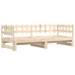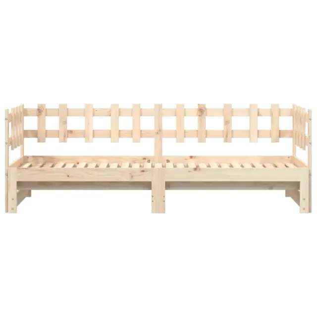 To vsestransko leseno dnevno posteljo lahko uporabljate kot posteljo v spalnici, odlična pa bo tudi kot kavč v dnevni sobi. Trdna borovina: Trdna borovina je čudovit naravni material. Borovina ima ravne vzorce, grče pa dajejo materialu njegov značilen, rustikalen videz. Ta postelja za goste je izdelana iz trdne borovine, zato je bolj stabilna in trpežna. Letven dizajn: Leseno letveno dno omogoča boljše kroženje zraka, zato bo vzmetnica dlje časa ostala sveža, ter izboljšuje nosilnost postelje in zagotavlja stabilnost. Enostavna uporaba: Ta dnevna postelja je zelo priročna za uporabo in ne potrebuje dodatnega vzmetenja ali podlage. Preprosto položite vzmetnico na vrh in uživajte v mirnem spanju ali sedenju! Izvlečna dnevna postelja: Ta lesena dnevna postelja se lahko uporablja kot kavč podnevi ali kot postelja ponoči ter ponuja hitro rešitev za nočne goste in hkrati prihrani prostor. Dobro je vedeti:Vzmetnice niso priložene tej postelji. Ponujamo različno izbiro ležišč. V naši trgovini si lahko ogledate ustrezne vzmetnice.Material: Trdna borovina (neobdelana)Dimenzije dnevne postelje (raztegnjena): 203,5 x 160 x 68,5 cm (D x Š x V)Dimenzije dnevne postelje (neraztegnjena): 203,5 x 86 x 68,5 cm (D x Š x V)Primerna velikost vzmetnice: 80 x 200 cm (Š x D)Potrebno: 2 x vzmetnica (ni vključena)Potrebno sestavljanje: Da 840385