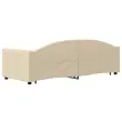 Ta 2 v 1 izvlečna dnevna postelja, ki služi kot kavč in postelja, je praktičen in privlačen dodatek za vašo dnevno sobo ali spalnico. Vsestranska dnevna postelja: Raztegljiva postelja čez dan deluje kot kavč, ponoči pa se z izvlečenim ležiščem zlahka spremeni v zakonsko posteljo, kar je priročna rešitev za sprejemanje gostov in maksimalno povečanje prostora.Vzdržljiva tkanina in trdna konstrukcija: Ta dnevni kavč ima trpežen okvir iz lesa in kovine ter je oblazinjen s trpežno in udobno tkanino.Sodobno oblikovanje: Kavč postelja ima sodoben dizajn, ki ga odlikujejo čiste linije, minimalističen videz in naravna svetloba, vašim notranjim prostorom pa bo dodal sodoben stil! Dobro je vedeti:Vzmetnice niso priložene tej postelji. Ponujamo različno izbiro ležišč. V naši trgovini si lahko ogledate ustrezne vzmetnice.Barva: KremMaterial: Tkanina (100 % poliester), kovina, trden lesMaterial letvic: Vezan les Material polnila: PenaDimenzije (neraztegnjena): 223 x 90 x 75 cm (Š x G x V)Dimenzije (raztegnjena): 223 x 172,5 x 75 cm (Š x G x V)Višina naslonjala za roke, merjena od tal: 58 cmVišina nog: 5 cmPrimerna velikost vzmetnice: 80 x 200 cm (Š x D) (vzmetnice niso priložene)Potrebno: 2 x vzmetnica (ni vključena)Potrebno sestavljanje: Da 3197187