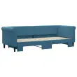 Ta 2 v 1 izvlečna dnevna postelja, ki služi kot kavč in postelja, je praktičen in privlačen dodatek za vašo dnevno sobo ali spalnico. Vsestranska dnevna postelja: Raztegljiva postelja čez dan deluje kot kavč, ponoči pa se z izvlečenim ležiščem zlahka spremeni v zakonsko posteljo, kar je priročna rešitev za sprejemanje gostov in maksimalno povečanje prostora.Mehak žamet in trdna konstrukcija: Ta dnevna postelja ima trpežen okvir iz lesa in kovine ter je oblazinjena z mehkim in udobnim žametom.Sodobno oblikovanje: Kavč postelja ima sodoben dizajn, ki ga odlikujejo čiste linije, minimalističen videz in naravna svetloba, vašim notranjim prostorom pa bo dodal sodoben stil! Dobro je vedeti:Vzmetnice niso priložene tej postelji. Ponujamo različno izbiro ležišč. V naši trgovini si lahko ogledate ustrezne vzmetnice.Barva: ModraMaterial: Žamet (100% poliester), kovina, trden lesMaterial letvic: Vezan lesMaterial polnila: PenaDimenzije (neraztegnjena): 229 x 90 x 68 cm (D x Š x V)Dimenzije (raztegnjena): 229 x 172,5 x 68 cm (D x Š x V)Višina naslonjal za roke, od tal: 68 cmVišina nog: 15 cmPrimerna velikost vzmetnice: 80 x 200 cm (Š x D)Potrebno: 2 x vzmetnica (ni vključena)Potrebno sestavljanje: Da 3197763