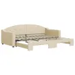 Ta 2 v 1 izvlečna dnevna postelja, ki služi kot kavč in postelja, je praktičen in privlačen dodatek za vašo dnevno sobo ali spalnico. Vsestranska dnevna postelja: Raztegljiva postelja čez dan deluje kot kavč, ponoči pa se z izvlečenim ležiščem zlahka spremeni v zakonsko posteljo, kar je priročna rešitev za sprejemanje gostov in maksimalno povečanje prostora. Trpežna tkanina: Postelja za goste je izdelana iz blaga. Tkanina je preprostega in čistega videza, hkrati pa je zračna in ima dolgo življenjsko dobo. Trdna konstrukcija: Lesen in kovinski okvir postelje za spanje zagotavlja trdnost in stabilnost. Dobro je vedeti:Vzmetnice niso priložene tej dnevni postelji. Ponujamo različno izbiro ležišč. V naši trgovini si lahko ogledate ustrezne vzmetnice.Barva: Krem Material: Tkanina (100 % poliester), kovina, trden lesMaterial letvic: Vezan les Material polnila: Pena Dimenzije (neraztegnjena): 223 x 100 x 75 cm (D x Š x V) Dimenzije (raztegnjena): 223 x 192,5 x 75 cm (D x Š x V) Višina naslonjala za roke, merjena od tal: 58 cmVišina nog: 5 cm Velikost primerne vzmetnice: 90 x 200 cm (Š x D) Potrebno: 2 x vzmetnica (ni vključena) Potrebno sestavljanje: Da 3197534
