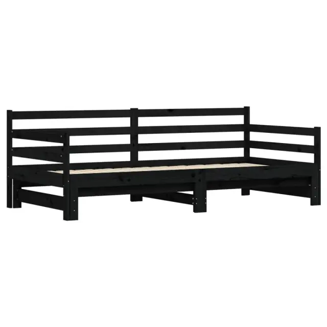 vidaXL Izvlečna dnevna postelja črna 90x200 cm trdna borovina