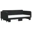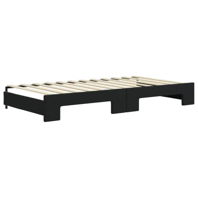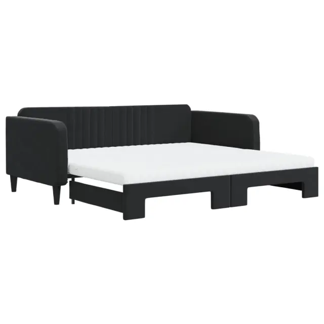 Ta 2 v 1 izvlečna dnevna postelja, ki služi kot kavč in postelja, je praktičen in privlačen dodatek za vašo dnevno sobo ali spalnico. Vsestranska dnevna postelja: Raztegljiva postelja čez dan deluje kot kavč, ponoči pa se z izvlečenim ležiščem zlahka spremeni v zakonsko posteljo, kar je priročna rešitev za sprejemanje gostov in maksimalno povečanje prostora.Udobna penasta vzmetnica: Ta postelja je opremljena z dvema vzmetnicama iz pene za največjo podporo in optimalno udobje.Mehak žamet in trdna konstrukcija: Ta dnevna postelja ima trpežen okvir iz lesa in kovine ter je oblazinjena z mehkim in udobnim žametom.Sodobno oblikovanje: Kavč postelja ima sodoben dizajn, ki ga odlikujejo čiste linije, minimalističen videz in naravna svetloba, vašim notranjim prostorom pa bo dodal sodoben stil!Barva: ČrnaMaterial: Žamet (100% poliester), kovina, trden lesMaterial letvic: Vezan lesMaterial prevleke vzmetnice: Kosmatena pleteninaMaterial polnila: PenaDimenzije (neraztegnjena): 223 x 110 x 75 cm (D x Š x V)Dimenzije (raztegnjena): 223 x 212,5 x 75 cm (D x Š x V)Dimenzije vzmetnice iz pene (vsaka): 100 x 200 x 10 cm (Š x D x V)Višina naslonjal za roke, od tal: 68 cmVišina nog: 15 cmPotrebno sestavljanje: DaPaket vsebuje:1 x Izvlečna dnevna postelja2 x Vzmetnica iz pene 3197098