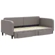 Ta 2 v 1 izvlečna dnevna postelja, ki služi kot kavč in postelja, je praktičen in privlačen dodatek za vašo dnevno sobo ali spalnico. Vsestranska dnevna postelja: Raztegljiva postelja čez dan deluje kot kavč, ponoči pa se z izvlečenim ležiščem zlahka spremeni v zakonsko posteljo, kar je priročna rešitev za sprejemanje gostov in maksimalno povečanje prostora.Veliko prostora za shranjevanje: Ta postelja za goste ima dva predala s kolesi, ki zagotavljata dovolj prostora za shranjevanje oblačil, nogavic, igrač, blazin itd.Vzdržljiva tkanina in trdna konstrukcija: Ta dnevni kavč ima trpežen okvir iz lesa in kovine ter je oblazinjen s trpežno in udobno tkanino. Dobro je vedeti:Vzmetnice niso priložene tej dnevni postelji. Ponujamo različno izbiro ležišč. V naši trgovini si lahko ogledate ustrezne vzmetnice.Barva: TaupeMaterial: Tkanina (100 % poliester), kovina, trden lesMaterial letvic: Vezan les Material polnila: Pena Dimenzije (neraztegnjena): 223 x 100 x 75 cm (D x Š x V) Dimenzije (raztegnjena): 223 x 192,5 x 75 cm (D x Š x V) Dimenzije posteljnega predala (vsak): 67 x 50 x 16 cm (D x Š x V)Višina naslonjal za roke, od tal: 68 cmVišina nog: 15 cmVelikost primerne vzmetnice: 90 x 200 cm (Š x D) Potrebno: 2 x vzmetnica (ni vključena) Potrebno sestavljanje: DaPaket vsebuje:1 x Izvlečna dnevna postelja 2 x Posteljni predal 3196855