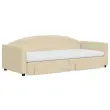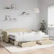 Ta 2 v 1 izvlečna dnevna postelja, ki služi kot kavč in postelja, je praktičen in privlačen dodatek za vašo dnevno sobo ali spalnico. Vsestranska dnevna postelja: Raztegljiva postelja čez dan deluje kot kavč, ponoči pa se z izvlečenim ležiščem zlahka spremeni v zakonsko posteljo, kar je priročna rešitev za sprejemanje gostov in maksimalno povečanje prostora.Veliko prostora za shranjevanje: Ta postelja za goste ima dva predala s kolesi, ki zagotavljata dovolj prostora za shranjevanje oblačil, nogavic, igrač, blazin itd.Udobna penasta vzmetnica: Ta postelja je opremljena z dvema vzmetnicama iz pene za največjo podporo in optimalno udobje.Vzdržljiva tkanina in trdna konstrukcija: Ta dnevni kavč ima trpežen okvir iz lesa in kovine ter je oblazinjen s trpežno in udobno tkanino.Barva: KremMaterial: Tkanina (100 % poliester), kovina, trden lesMaterial letvic: Vezan les Material polnila: PenaDimenzije (neraztegnjena): 223 x 100 x 75 cm (Š x G x V)Dimenzije (raztegnjena): 223 x 192,5 x 75 cm (Š x G x V)Dimenzije vzmetnice iz pene (vsaka): 90 x 200 x 10 cm (Š x D x D)Dimenzije posteljnega predala (vsak): 67 x 50 x 16 cm (D x Š x V)Višina naslonjala za roke, merjena od tal: 58 cmVišina nog: 5 cmPotrebno sestavljanje: DaPaket vsebuje:1 x Izvlečna dnevna postelja2 x Vzmetnica iz pene2 x Posteljni predal 3197246