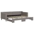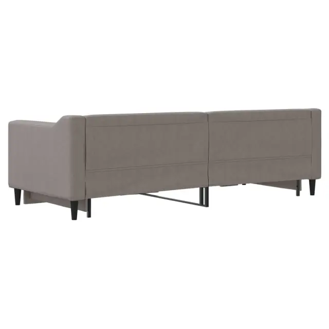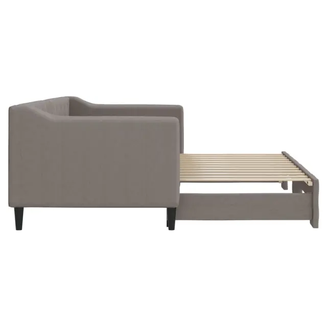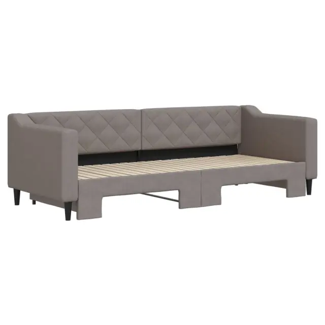 Ta 2 v 1 izvlečna dnevna postelja, ki služi kot kavč in postelja, je praktičen in privlačen dodatek za vašo dnevno sobo ali spalnico. Vsestranska dnevna postelja: Raztegljiva postelja čez dan deluje kot kavč, ponoči pa se z izvlečenim ležiščem zlahka spremeni v zakonsko posteljo, kar je priročna rešitev za sprejemanje gostov in maksimalno povečanje prostora.Vzdržljiva tkanina in trdna konstrukcija: Ta dnevni kavč ima trpežen okvir iz lesa in kovine ter je oblazinjen s trpežno in udobno tkanino.Sodobno oblikovanje: Kavč postelja ima sodoben dizajn, ki jo odlikujejo čiste linije, minimalističen videz, vašim notranjim prostorom pa bo dodala sodoben stil! Dobro je vedeti:Vzmetnice niso priložene tej postelji. Ponujamo različno izbiro ležišč. V naši trgovini si lahko ogledate ustrezne vzmetnice.Barva: TaupeMaterial: Tkanina (100 % poliester), kovina, trden lesMaterial letvic: Vezan les Material polnila: PenaDimenzije (neraztegnjena): 223 x 90 x 67 cm (D x Š x V)Dimenzije (raztegnjena): 223 x 172,5 x 67 cm (D x Š x V)Višina sedeža, merjena od tal: 26,5 cmVišina nog: 15 cmPrimerna velikost vzmetnice: 80 x 200 cm (Š x D) Potrebno: 2 x vzmetnica (ni vključena)Potrebno sestavljanje: Da 3197424