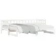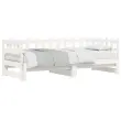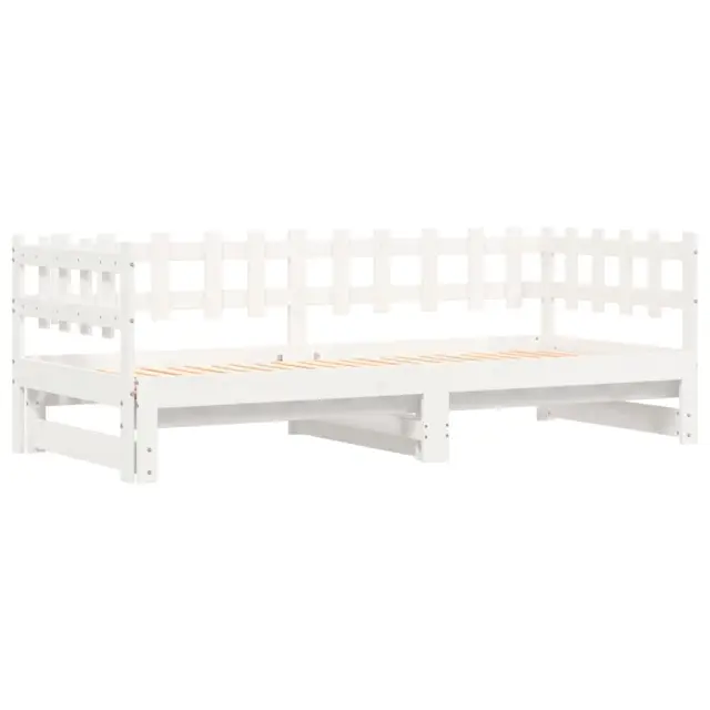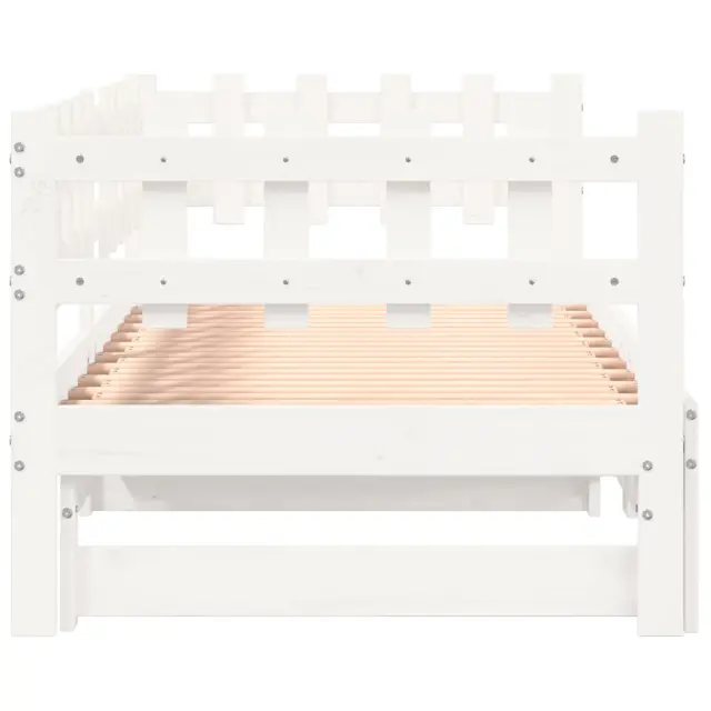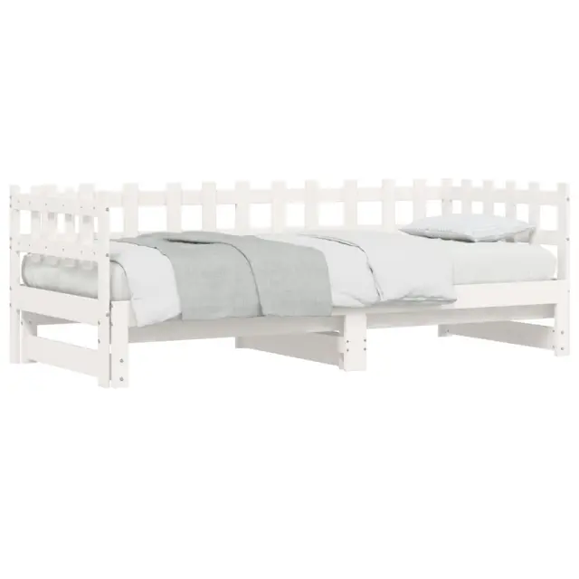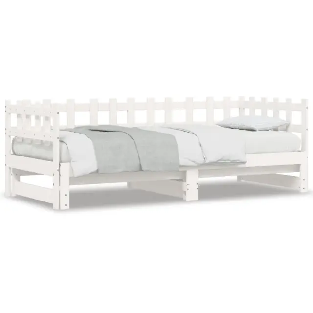 To vsestransko leseno dnevno posteljo lahko uporabljate kot posteljo v spalnici, odlična pa bo tudi kot kavč v dnevni sobi. Trdna borovina: Trdna borovina je čudovit naravni material. Borovina ima ravne vzorce, grče pa dajejo materialu njegov značilen, rustikalen videz. Ta postelja za goste je izdelana iz trdne borovine, zato je bolj stabilna in trpežna. Letven dizajn: Leseno letveno dno omogoča boljše kroženje zraka, zato bo vzmetnica dlje časa ostala sveža, ter izboljšuje nosilnost postelje in zagotavlja stabilnost. Enostavna uporaba: Ta dnevna postelja je zelo priročna za uporabo in ne potrebuje dodatnega vzmetenja ali podlage. Preprosto položite vzmetnico na vrh in uživajte v mirnem spanju ali sedenju! Izvlečna dnevna postelja: Ta lesena dnevna postelja se lahko uporablja kot kavč podnevi ali kot postelja ponoči ter ponuja hitro rešitev za nočne goste in hkrati prihrani prostor. Dobro je vedeti:Vzmetnice niso priložene tej postelji. Ponujamo različno izbiro ležišč. V naši trgovini si lahko ogledate ustrezne vzmetnice.Barva: BelaMaterial: Trdna borovina Dimenzije dnevne postelje (raztegnjena): 203,5 x 184 x 68,5 cm (D x Š x V)Dimenzije dnevne postelje (neraztegnjena): 203,5 x 98 x 68,5 cm (D x Š x V)Velikost primerne vzmetnice: 90 x 200 cm (Š x D)Potrebno: 2 x vzmetnica (ni vključena)Potrebno sestavljanje: Da 840389