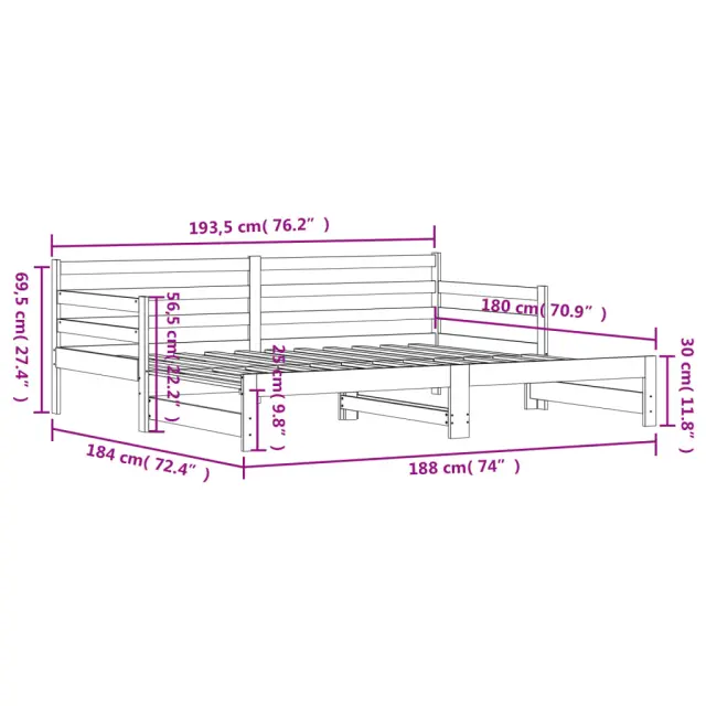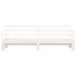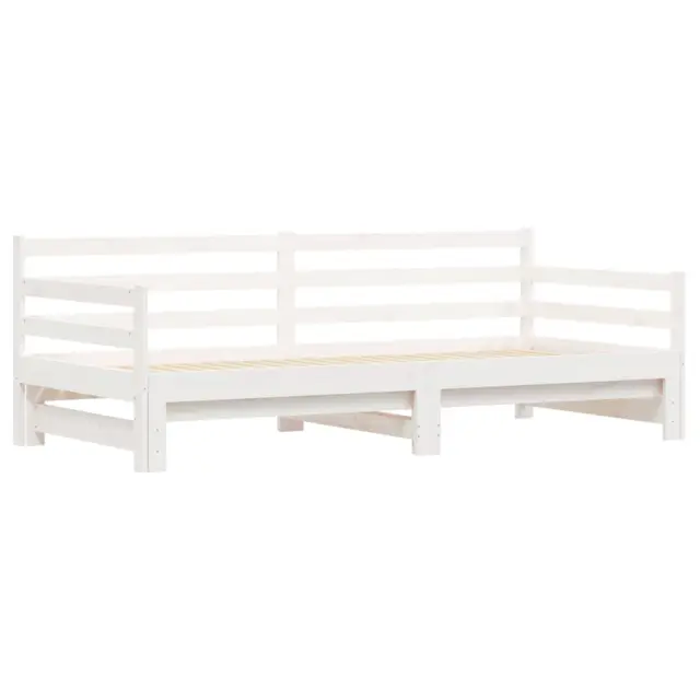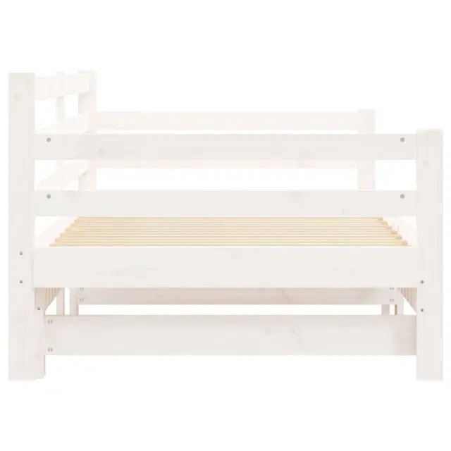 Ta 2 v 1 izvlečna dnevna postelja, ki služi kot kavč in postelja, je praktičen in privlačen dodatek za vašo dnevno sobo ali spalnico. Trdna borovina: Trdna borovina je čudovit naravni material. Borovina ima ravne vzorce, grče pa dajejo materialu njegov značilen, rustikalen videz. Postelja za goste je izdelana iz trdne borovine za stabilnost in vzdržljivost.Vsestranska dnevna postelja: Raztegljiva postelja čez dan deluje kot kavč, ponoči pa se z izvlečenim ležiščem zlahka spremeni v zakonsko posteljo, kar je priročna rešitev za sprejemanje gostov in maksimalno povečanje prostora.Dodaten prostor za shranjevanje: Pod ležiščem je dodaten prostor, v katerega lahko namestite predale ali škatle za shranjevanje oblačil, nogavic, igrač, blazin itd. Dobro je vedeti:Paket vsebuje samo okvir dnevne postelje. Vzmetnice niso priložene V naši trgovini si lahko ogledate ustrezne vzmetnice.Barva: BelaMaterial: Trdna borovinaDimenzije (neraztegnjena): 193,5 x 97,5 x 69,5 cm (D x Š x V)Dimenzije (raztegnjena): 193,5 x 184 x 69,5 cm (D x Š x V)Velikost primerne vzmetnice: 90 x 190 cm (Š x D)Višina prostora pod posteljo: 21 cmPotrebno: 2 x vzmetnica (ni vključena)Potrebno sestavljanje: Da 836154