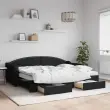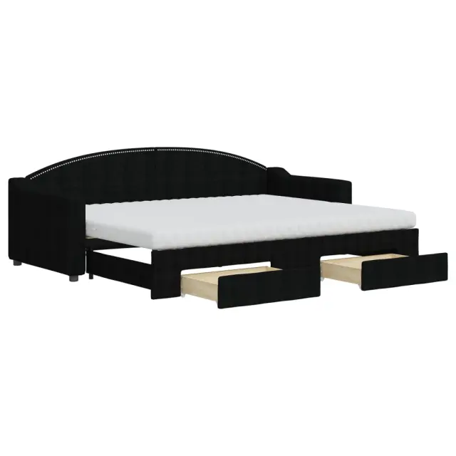 Ta 2 v 1 izvlečna dnevna postelja, ki služi kot kavč in postelja, je praktičen in privlačen dodatek za vašo dnevno sobo ali spalnico. Vsestranska dnevna postelja: Raztegljiva postelja čez dan deluje kot kavč, ponoči pa se z izvlečenim ležiščem zlahka spremeni v zakonsko posteljo, kar je priročna rešitev za sprejemanje gostov in maksimalno povečanje prostora. Veliko prostora za shranjevanje: Ta postelja za goste ima dva predala s kolesi, ki zagotavljata dovolj prostora za shranjevanje oblačil, nogavic, igrač, blazin itd. Udobna penasta vzmetnica: Ta postelja je opremljena z dvema vzmetnicama iz pene za največjo podporo in optimalno udobje. Vzdržljiva tkanina in trdna konstrukcija: Ta dnevni kavč ima trpežen okvir iz lesa in kovine ter je oblazinjen s trpežno in udobno tkanino.Barva: Črna Material: Tkanina (100 % poliester), kovina, trden les, inženirski lesMaterial letvic: Vezan les Material polnila: Pena Dimenzije (neraztegnjena): 223 x 90 x 75 cm (D x Š x V) Dimenzije (raztegnjena): 223 x 172,5 x 75 cm (D x Š x V) Dimenzije vzmetnice iz pene (vsaka): 80 x 200 x 10 cm (Š x D x V)Dimenzije posteljnega predala (vsak): 67 x 50 x 16 cm (D x Š x V)Višina naslonjala za roke, merjena od tal: 58 cmVišina nog: 5 cm Potrebno sestavljanje: DaPaket vsebuje:1 x Izvlečna dnevna postelja 2 x Vzmetnica iz pene2 x Posteljni predal 3197581