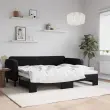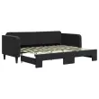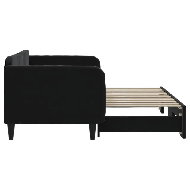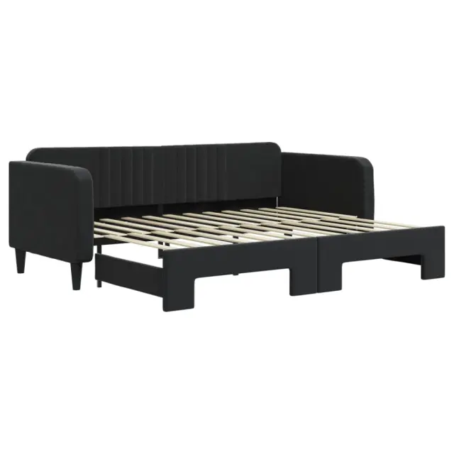 Ta 2 v 1 izvlečna dnevna postelja, ki služi kot kavč in postelja, je praktičen in privlačen dodatek za vašo dnevno sobo ali spalnico. Vsestranska dnevna postelja: Raztegljiva postelja čez dan deluje kot kavč, ponoči pa se z izvlečenim ležiščem zlahka spremeni v zakonsko posteljo, kar je priročna rešitev za sprejemanje gostov in maksimalno povečanje prostora.Mehak žamet in trdna konstrukcija: Ta dnevna postelja ima trpežen okvir iz lesa in kovine ter je oblazinjena z mehkim in udobnim žametom.Sodobno oblikovanje: Kavč postelja ima sodoben dizajn, ki ga odlikujejo čiste linije, minimalističen videz in naravna svetloba, vašim notranjim prostorom pa bo dodal sodoben stil! Dobro je vedeti:Vzmetnice niso priložene tej postelji. Ponujamo različno izbiro ležišč. V naši trgovini si lahko ogledate ustrezne vzmetnice.Barva: ČrnaMaterial: Žamet (100% poliester), kovina, trden lesMaterial letvic: Vezan lesMaterial polnila: PenaDimenzije (neraztegnjena): 223 x 100 x 75 cm (D x Š x V)Dimenzije (raztegnjena): 223 x 192,5 x 75 cm (D x Š x V)Višina naslonjal za roke, od tal: 68 cmVišina nog: 15 cmVelikost primerne vzmetnice: 90 x 200 cm (Š x D)Potrebno: 2 x vzmetnica (ni vključena)Potrebno sestavljanje: Da 3197067