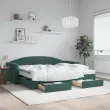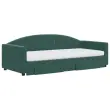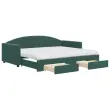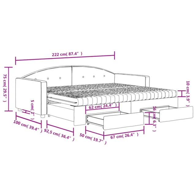 Ta 2 v 1 izvlečna dnevna postelja s predali, ki služi kot kavč in postelja, je praktičen in privlačen dodatek za vašo dnevno sobo ali spalnico. Vsestranska dnevna postelja: Raztegljiva postelja čez dan deluje kot kavč, ponoči pa se z izvlečenim ležiščem zlahka spremeni v zakonsko posteljo, kar je priročna rešitev za sprejemanje gostov in maksimalno povečanje prostora. Veliko prostora za shranjevanje: Ta postelja za goste ima dva predala s kolesi, ki zagotavljata dovolj prostora za shranjevanje oblačil, nogavic, igrač, blazin itd. Udobna penasta vzmetnica: Ta postelja je opremljena z dvema vzmetnicama iz pene za največjo podporo in optimalno udobje. Mehak žamet in trdna konstrukcija: Ta dnevna postelja ima trpežen okvir iz lesa in kovine ter je oblazinjena z mehkim in udobnim žametom.Barva: Temno zelenaMaterial: Žamet (100 % poliester), kovina, trden les, inženirski lesMaterial letvic: Vezan lesMaterial polnila: Pena Material prevleke vzmetnice: Kosmatena pleteninaDimenzije (neraztegnjena): 222 x 100 x 75 cm (D x Š x V)Dimenzije (raztegnjena): 222 x 192,5 x 75 cm (D x Š x V)Dimenzije vzmetnice iz pene (vsaka): 90 x 200 x 10 cm (Š x D x D)Dimenzije posteljnega predala (vsak): 67 x 50 x 16 cm (D x Š x V)Višina naslonjala za roke, merjena od tal: 58 cmVišina nog: 5 cmPotrebno sestavljanje: DaPaket vsebuje:1 x Izvlečna dnevna postelja 2 x Vzmetnica iz pene2 x Posteljni predal 3197375