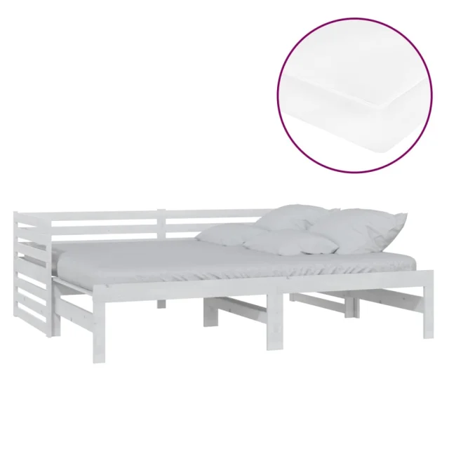 vidaXL Izvlečna dnevna postelja 2x(90x200) cm bela trdna borovina