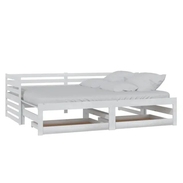 vidaXL Izvlečna dnevna postelja 2x(90x200) cm bela trdna borovina