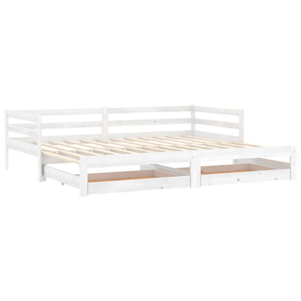 vidaXL Izvlečna dnevna postelja 2x(90x200) cm bela trdna borovina