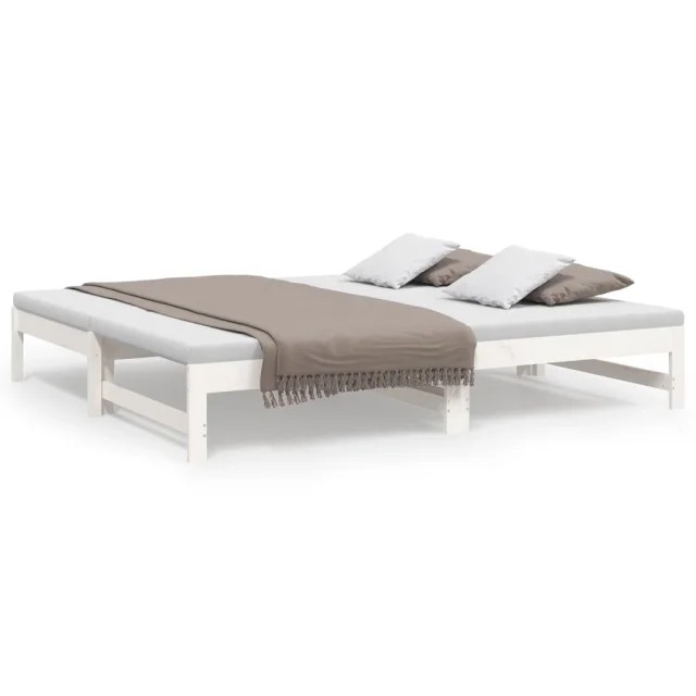 vidaXL Izvlečna dnevna postelja bela 2x(75x190) cm trdna borovina