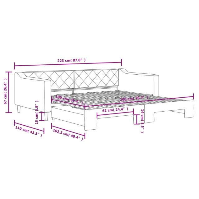 Ta 2 v 1 izvlečna dnevna postelja, ki služi kot kavč in postelja, je praktičen in privlačen dodatek za vašo dnevno sobo ali spalnico.