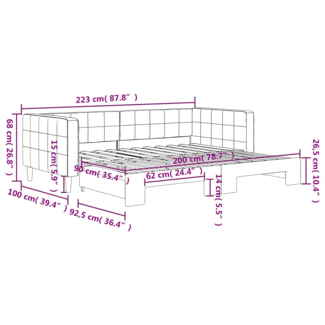 Ta 2 v 1 izvlečna dnevna postelja, ki služi kot kavč in postelja, je praktičen in privlačen dodatek za vašo dnevno sobo ali spalnico.