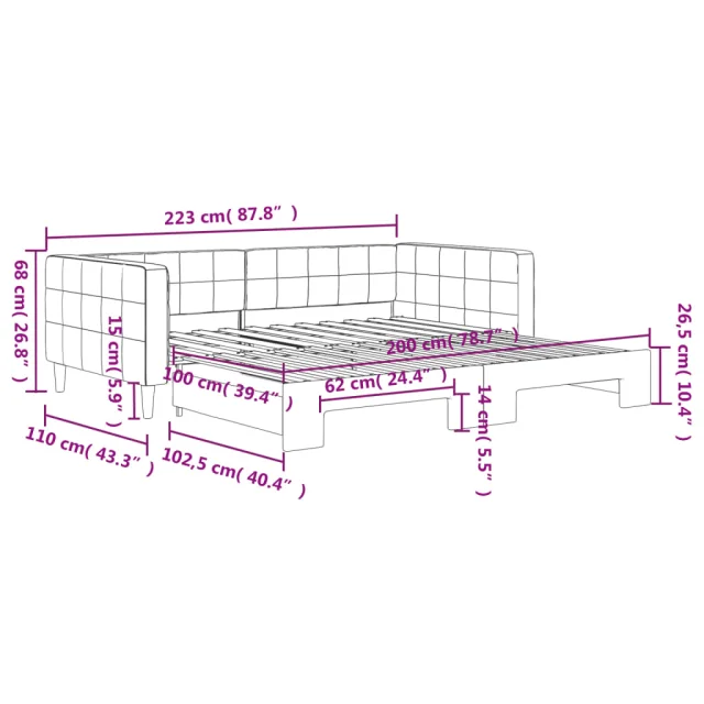 Ta 2 v 1 izvlečna dnevna postelja, ki služi kot kavč in postelja, je praktičen in privlačen dodatek za vašo dnevno sobo ali spalnico.