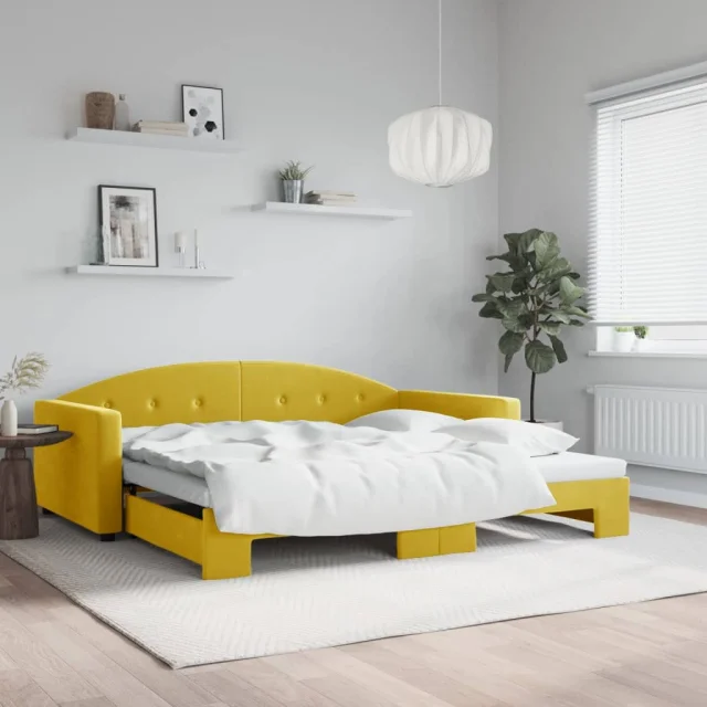 vidaXL Izvlečna dnevna postelja rumena 100x200 cm žamet