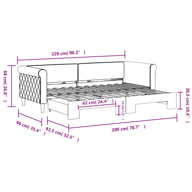 vidaXL Izvlečna dnevna postelja rumena 80x200 cm žamet
