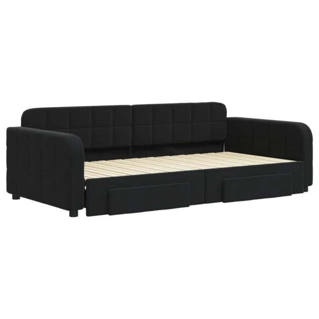 vidaXL Izvlečna dnevna postelja s predali črna 100x200 cm žamet