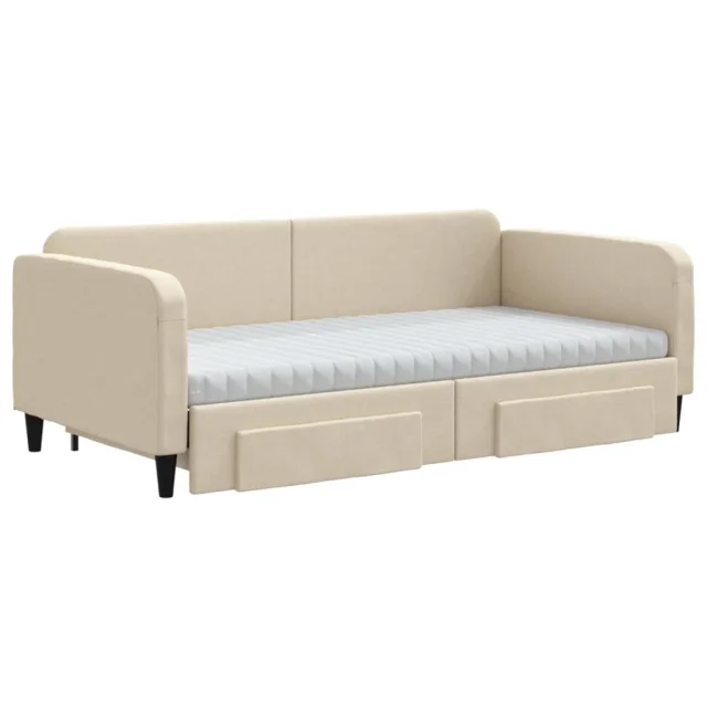 vidaXL Izvlečna dnevna postelja s predali krem 100x200 cm blago