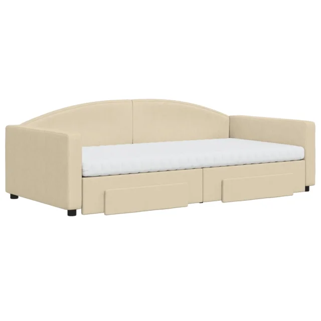 vidaXL Izvlečna dnevna postelja s predali krem 100x200 cm blago