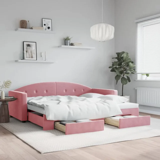 vidaXL Izvlečna dnevna postelja s predali roza 90x200 cm žamet