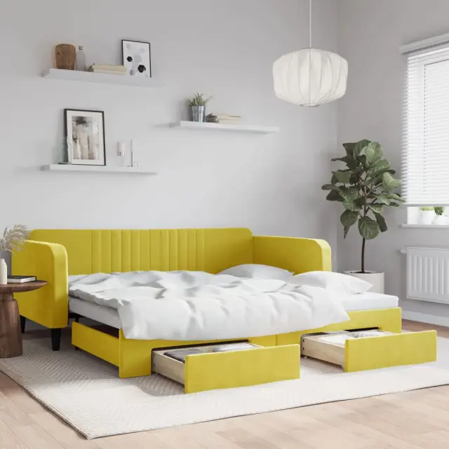 vidaXL Izvlečna dnevna postelja s predali rumena 100x200 cm žamet