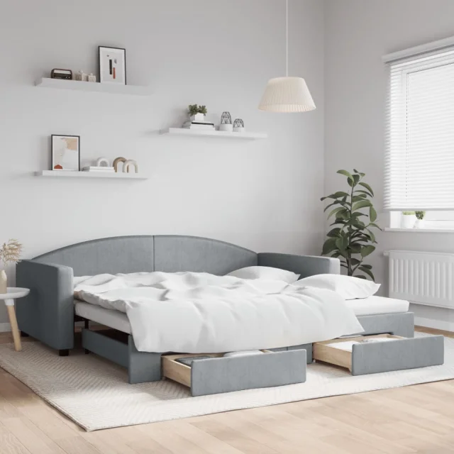vidaXL Izvlečna dnevna postelja s predali svetlo siva 100x200 cm blago