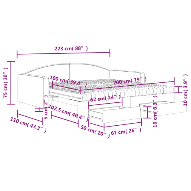 Ta 2 v 1 izvlečna dnevna postelja, ki služi kot kavč in postelja, je praktičen in privlačen dodatek za vašo dnevno sobo ali spalnico.