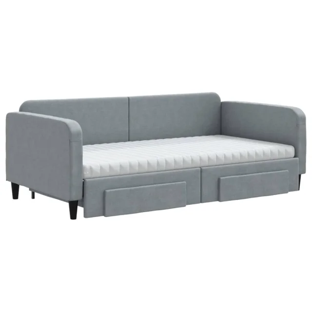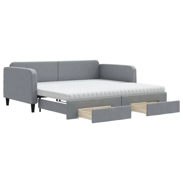 vidaXL Izvlečna dnevna postelja s predali svetlo siva 100x200 cm blago