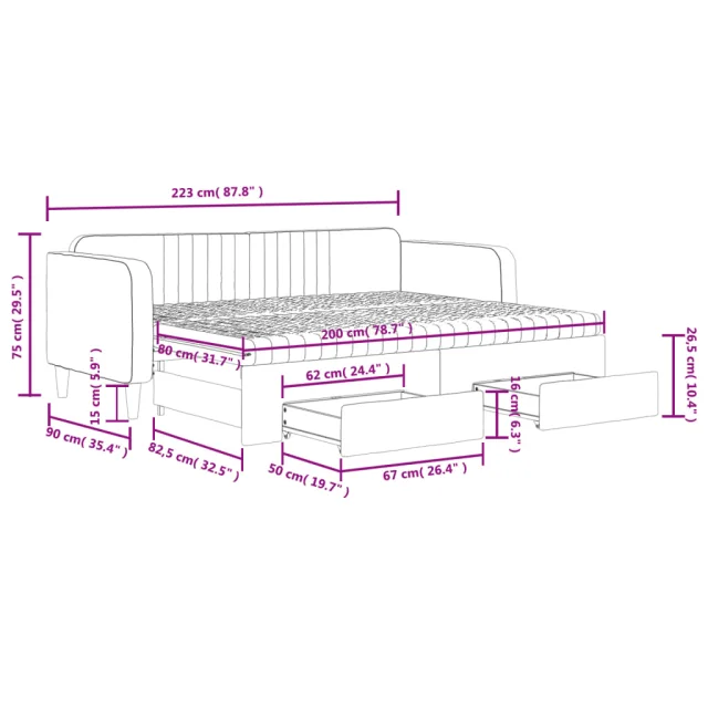 Ta 2 v 1 izvlečna dnevna postelja, ki služi kot kavč in postelja, je praktičen in privlačen dodatek za vašo dnevno sobo ali spalnico.