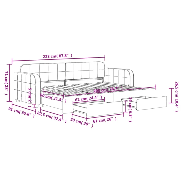 Ta 2 v 1 izvlečna dnevna postelja, ki služi kot kavč in postelja, je praktičen in privlačen dodatek za vašo dnevno sobo ali spalnico.